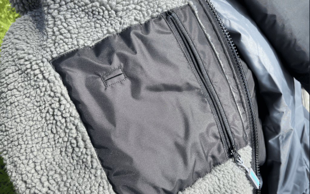 | Material | Outer: 100% recycled Nylon with water-repellent coating on plant-based compounds. Inner: Lining made of high-strength Sherpa fleece (60% from recycled materials) |