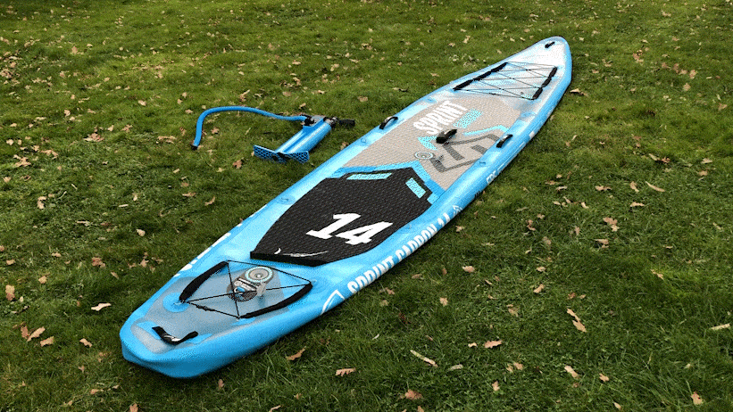 - Bluefin Sprint Carbon Triple-Action Pump: The included pump allows for rapid inflation, with a triple-action mode that fills the board quickly and efficiently. It takes about 6 to 8 minutes to inflate the 14-foot model to 15 PSI.