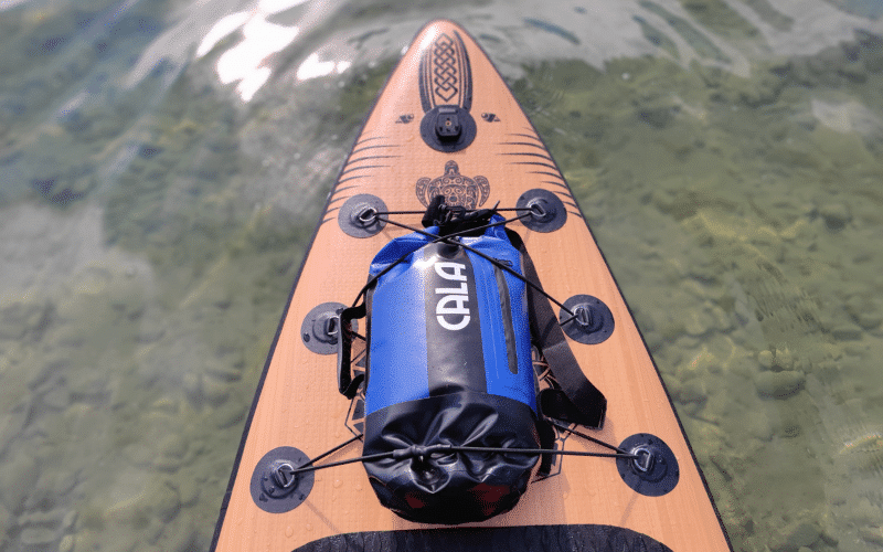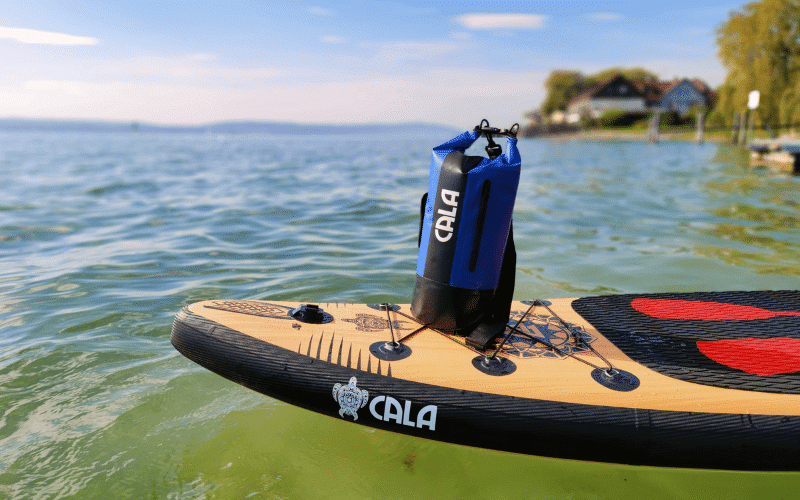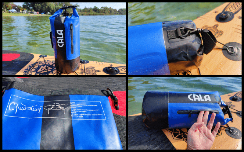 • 10-liter capacity: With a compact size of 49 x 29 cm, the CALA Drybag offers ample space for smaller valuables like keys, a wallet, a smartphone, a small drink bottle, and a towel – perfect for short SUP trips.