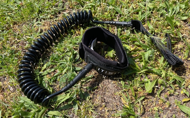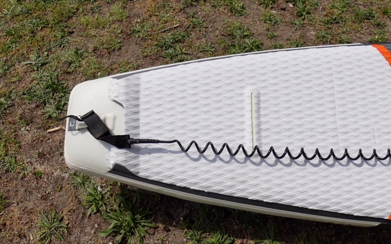 - Decathlon Itiwit Racing Coiled Leash: The spiral safety leash can be securely fastened around your ankle or below the knee, keeping the board close in case you fall into the water.