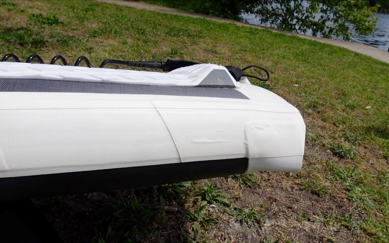 - Reinforced Nose and Tail: The board’s nose and tail are reinforced with an additional layer of PVC, providing extra durability and stiffness for better performance on the water.