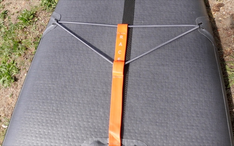 - Cargo Net: To securely store equipment or provisions, a small, flexible deck net is attached in the front area with 2 loops. The orange strap also provides the option to securely fasten a bottle. This design is quite exceptional. To protect your belongings from water damage, it is recommended to use a dry bag.