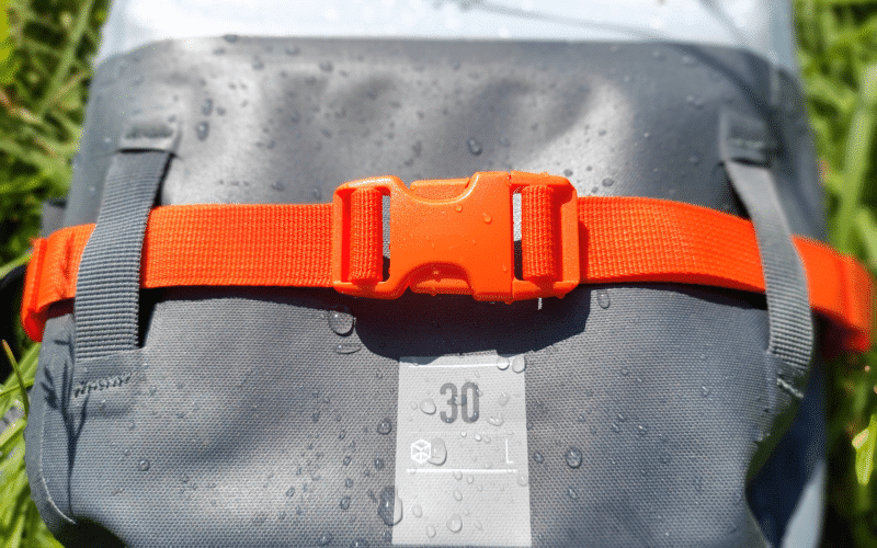 - Fasten the Buckles: Begin by closing the middle buckle, then proceed to the side buckles to ensure the roll-top is securely fastened.