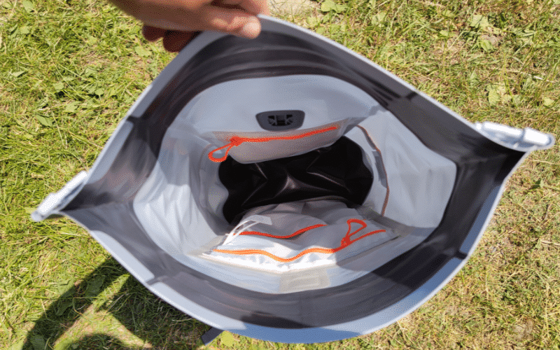 - Keep Some Air Inside: Avoid letting all the air escape; the closed backpack should appear inflated. This allows it to remain buoyant and watertight if it falls into the water.