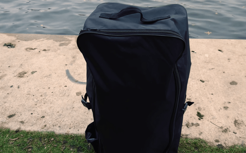 • FitEngine Trip 10’8 SUP Backpack: The set includes a simple and functional black SUP backpack with a large main compartment designed to hold the deflated board and additional gear. It features lightly padded straps, a top handle, and two side straps for adjusting the backpack’s volume, making transportation a breeze.