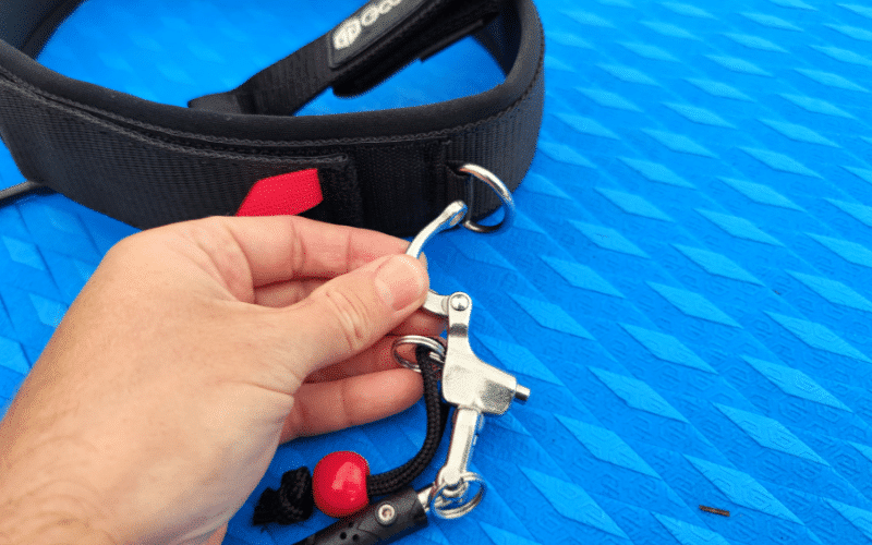 - Quick-release mechanism with cord and handleball: This essential feature enables you to disconnect the leash from the waistbelt in a fraction of a second, ensuring your safety during challenging paddleboarding conditions.