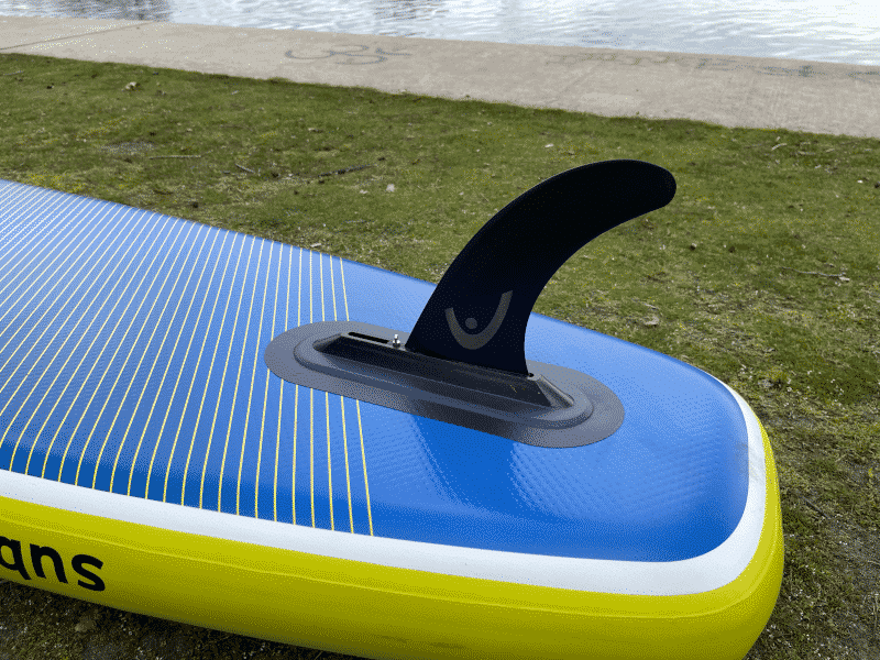 - Central Carry Handle: The board comes equipped with a central neoprene-covered carry handle, allowing for easy transportation of the 10 kg board to and from the water.