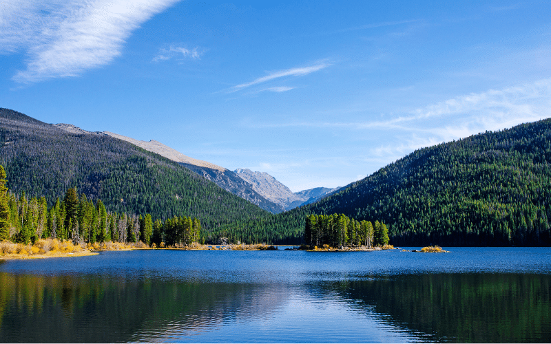 Monarch Lake offers a serene, high-altitude mountain lake experience. It’s located within Arapaho National Forest and boasts picturesque views of the Indian Peaks.