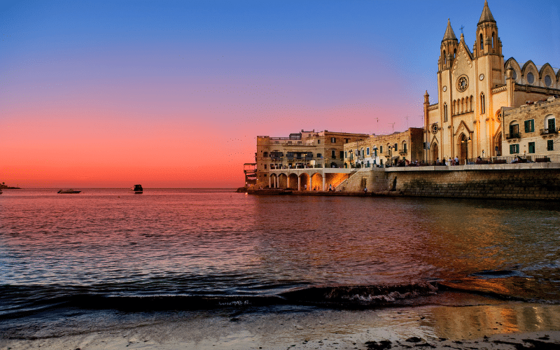 Located on the northeastern coast of Malta, St. Julian’s Bay offers a mix of crystal-clear waters and a vibrant urban setting.