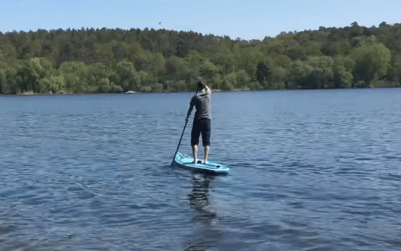 The board’s design and riding characteristics make it ideal for long-distance paddling on calm waters.