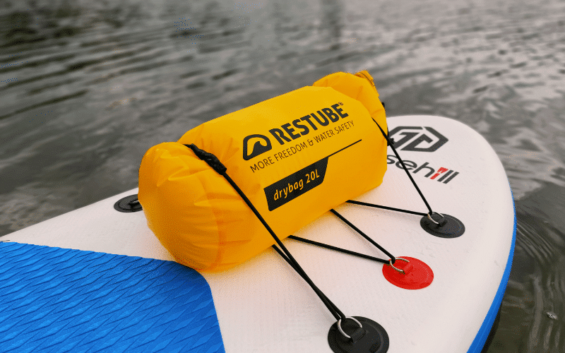 The Restube Drybag is an excellent addition to any watersport activity, including Stand Up Paddling, kayaking, and canoeing. With its waterproof, dustproof, and sandproof material, your belongings are protected while you’re on the water.