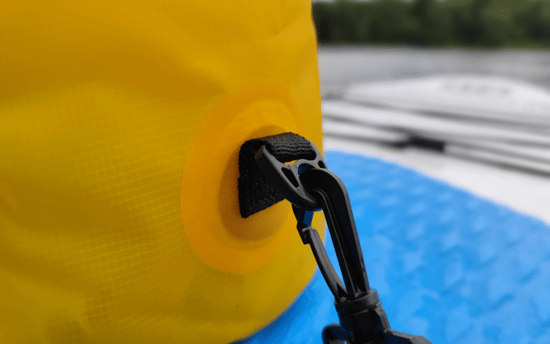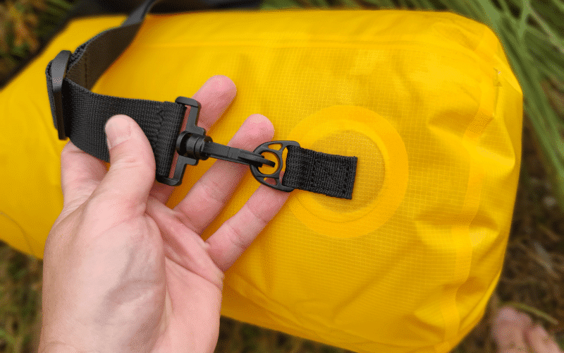 4. Attach the Shoulder Strap: Customize the length of the adjustable shoulder strap to your preference. Use the attached carabiner hooks to connect the strap to the loops on the Drybag, ensuring secure transport during your adventures.