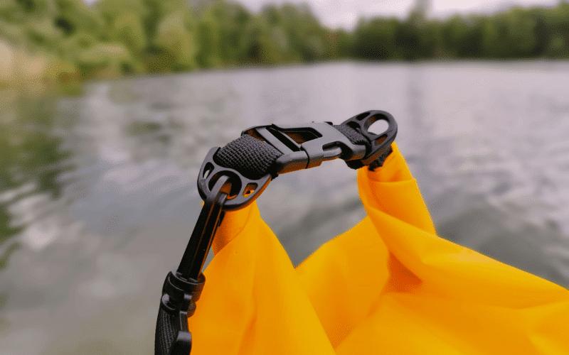 3. Seal the Opening: To ensure a watertight seal, fold the top edge of the Drybag at least three times. Secure the folded edge with the attached buckle, which also features two additional plastic loops for added security.